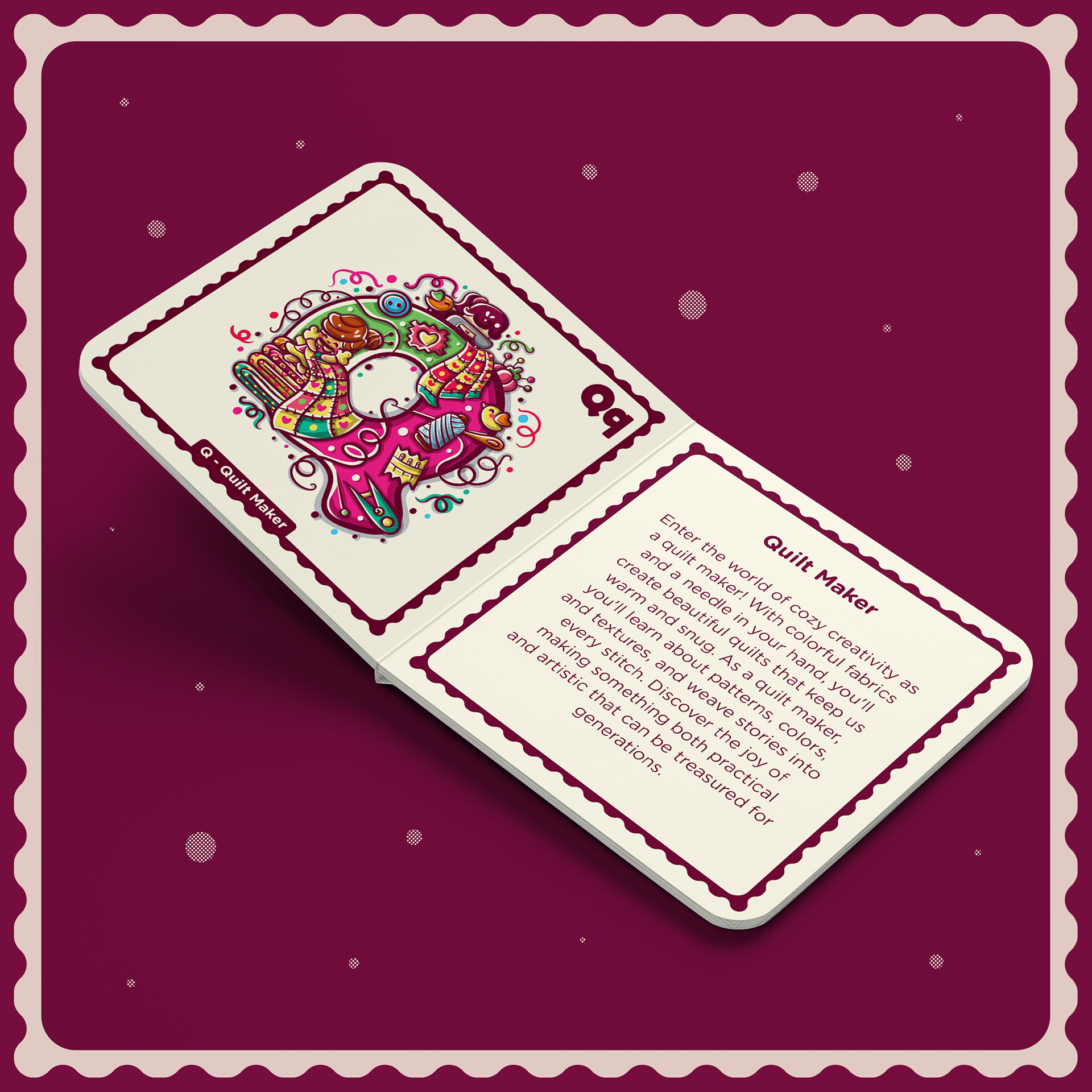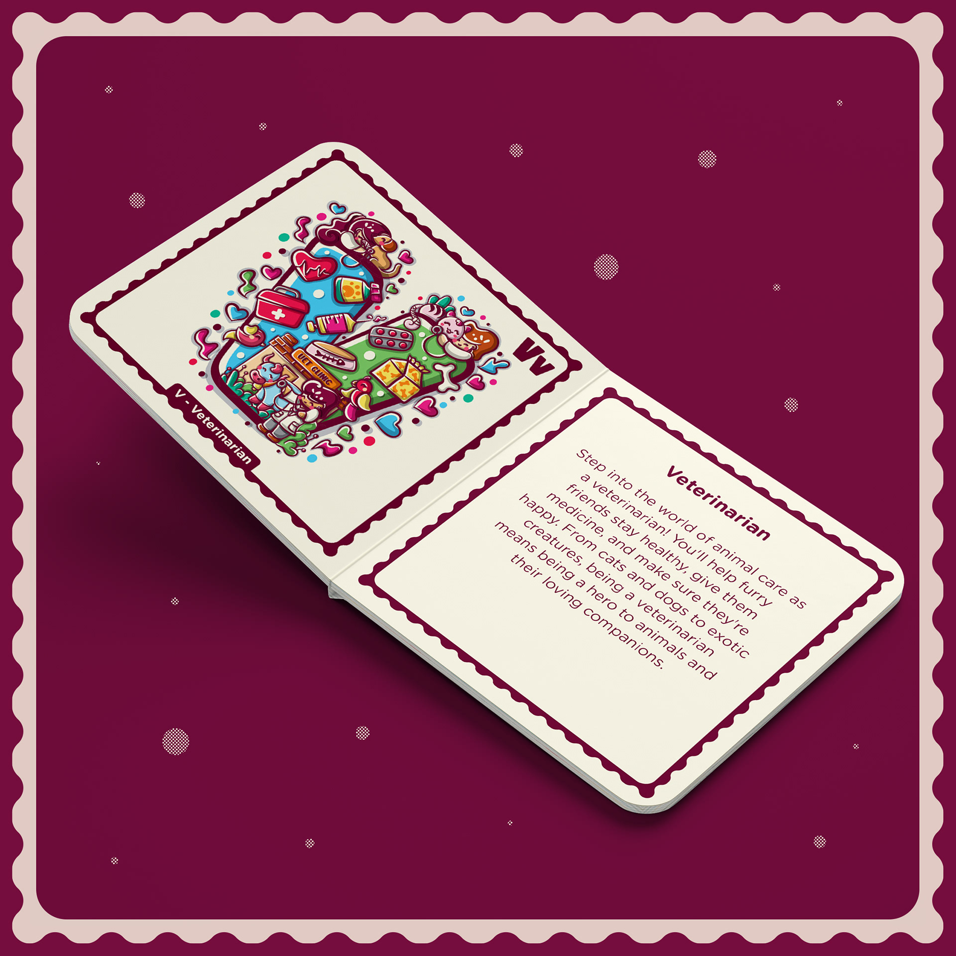 "My Little Career ABC" is a fascinating children's book and merchandise that takes young children on an exciting journey through the world of cute professionals and their associated stuff. From A to Z, each page shows an interesting professional, accompanied by colourful illustrations and interesting details that grab their interest.