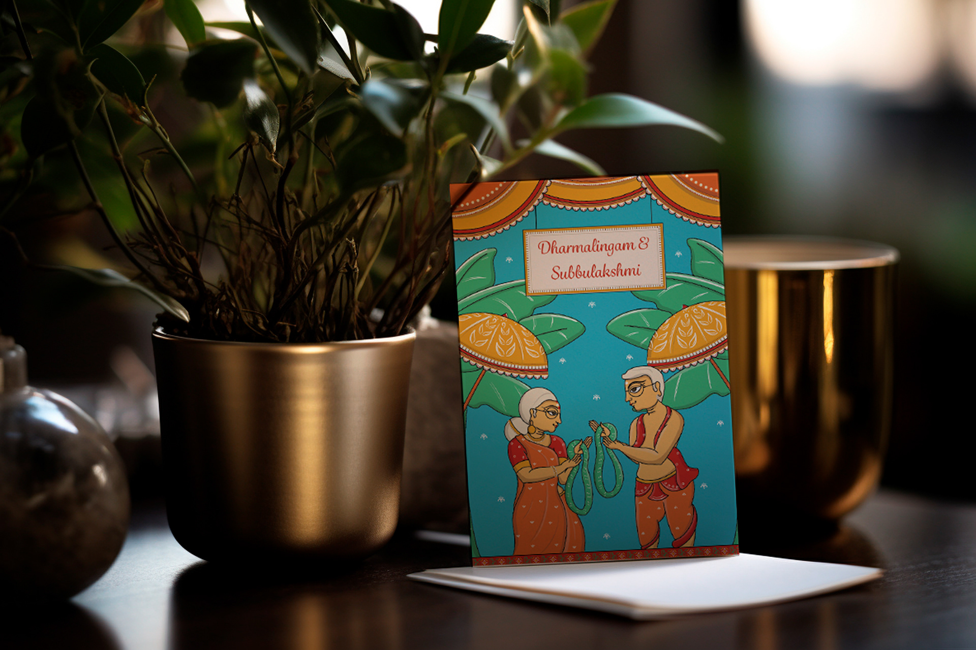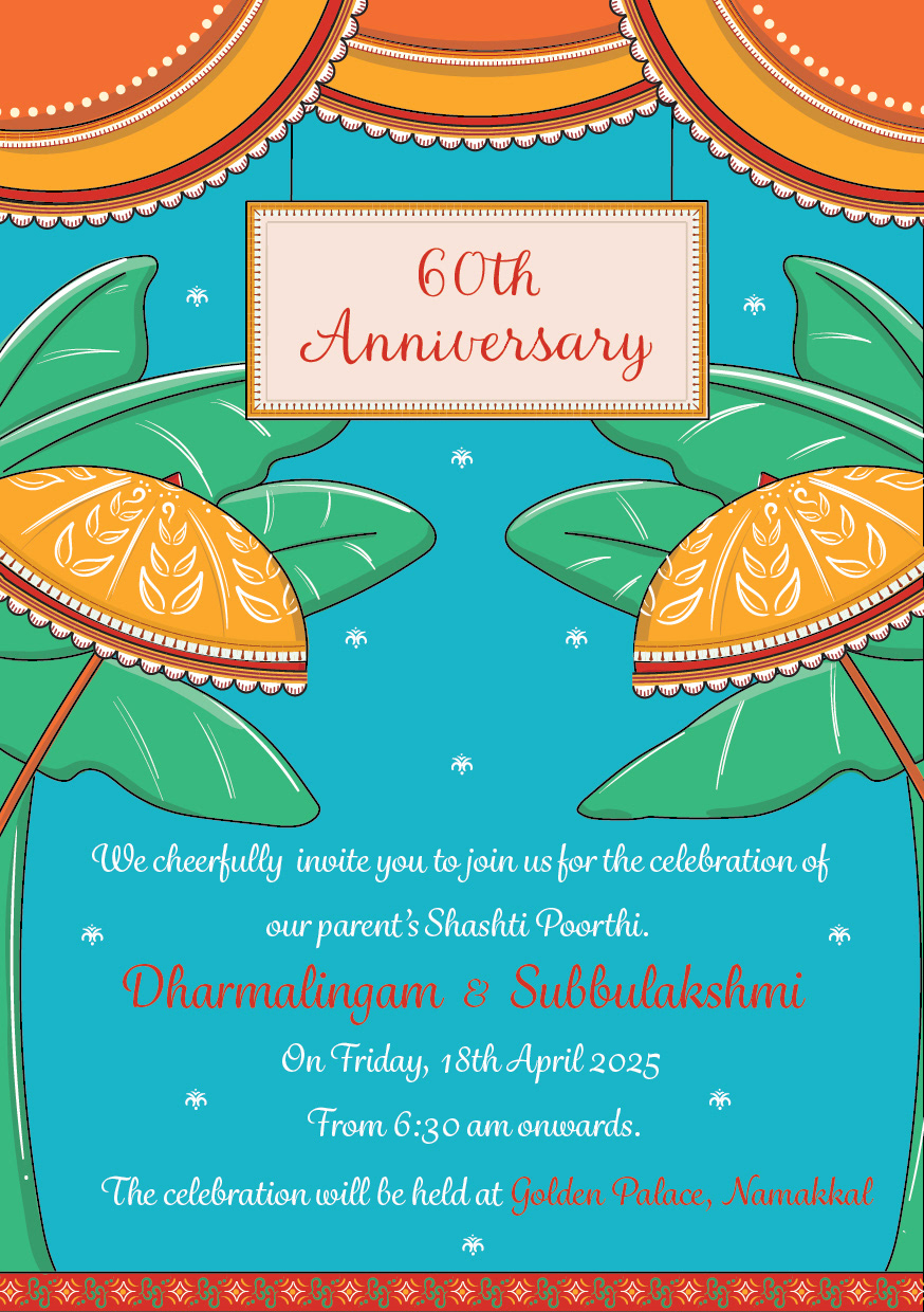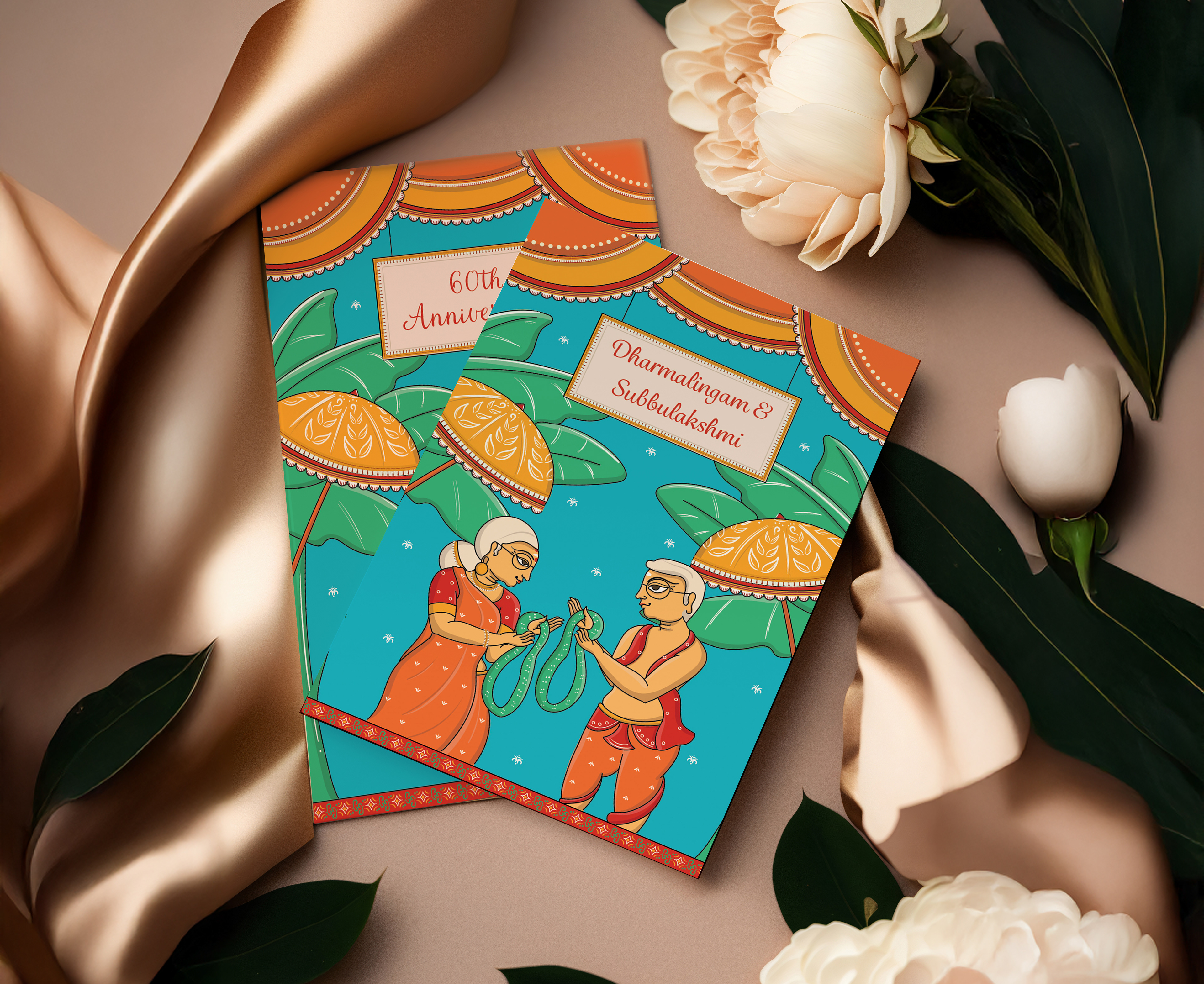 Shashti Poorthi invite in Odisha Pattachitra, Indian folkart form.
