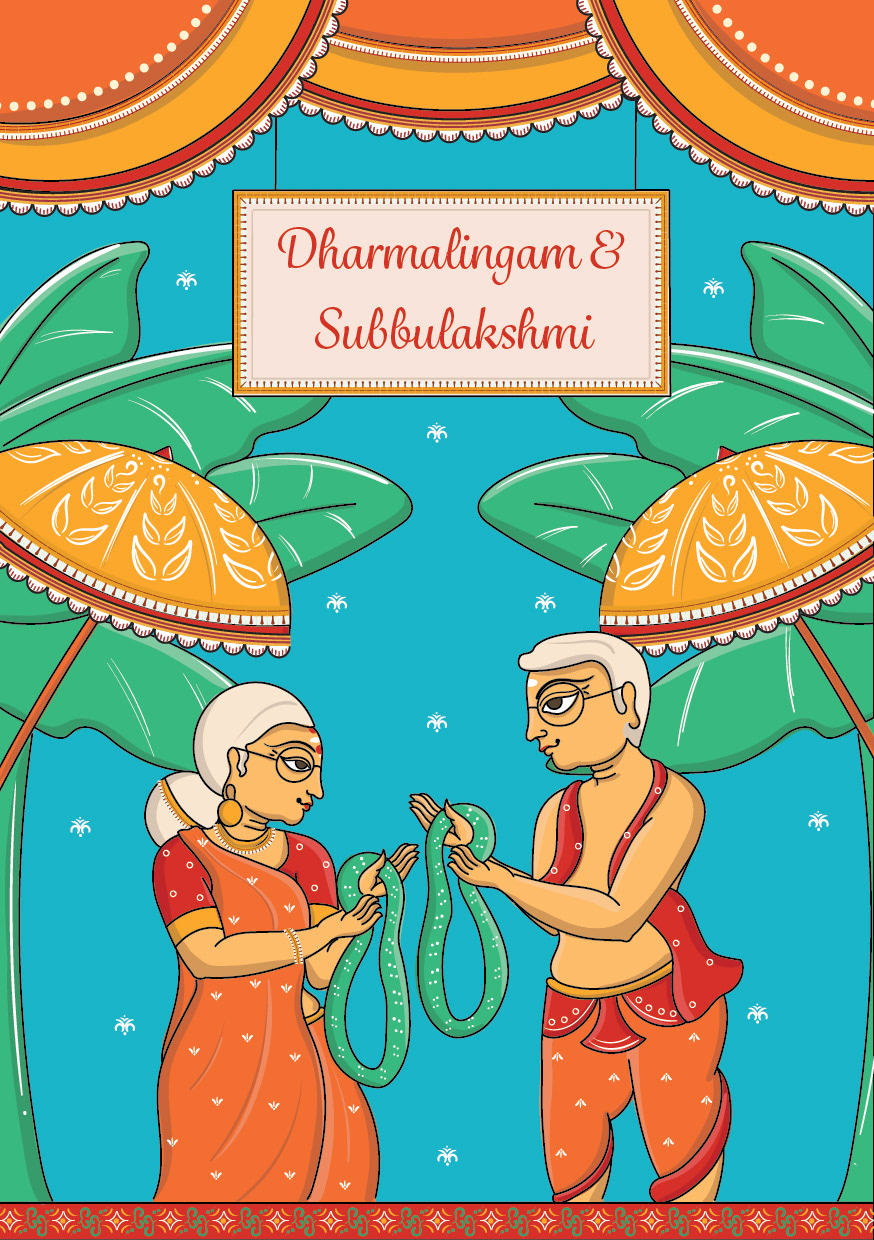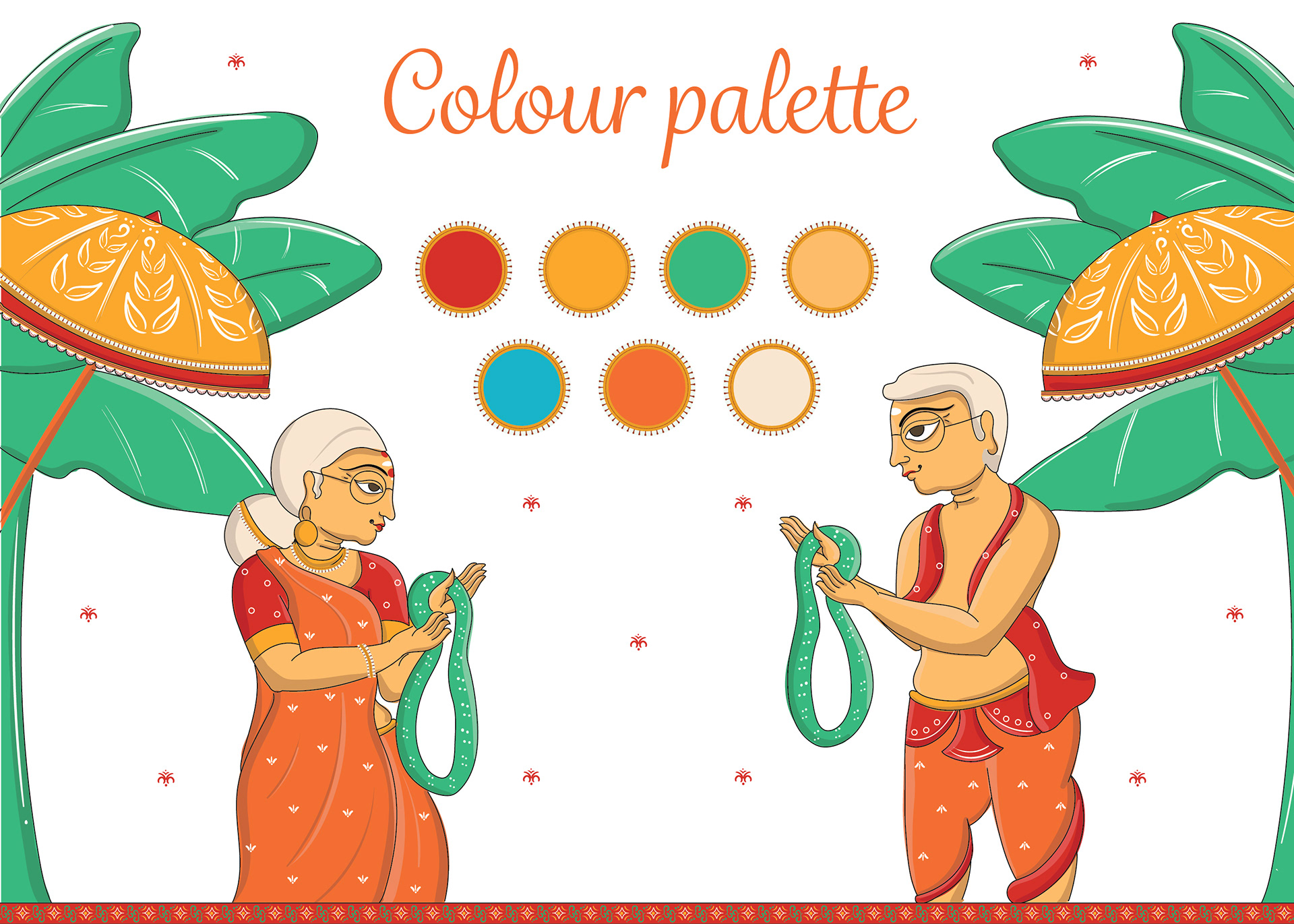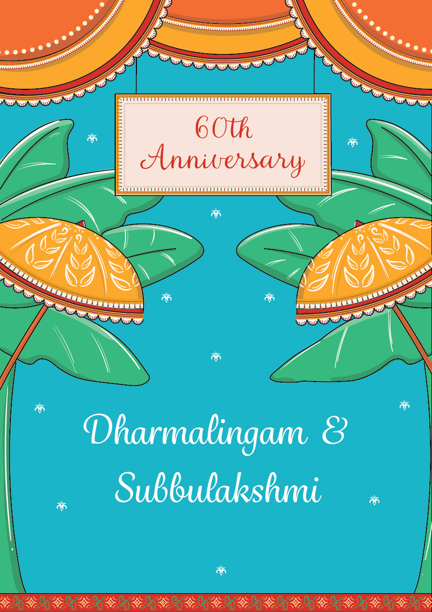 Shashti Poorthi invite in Odisha Pattachitra, Indian folkart form.