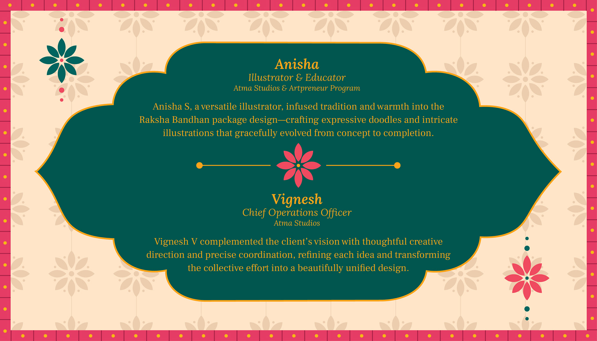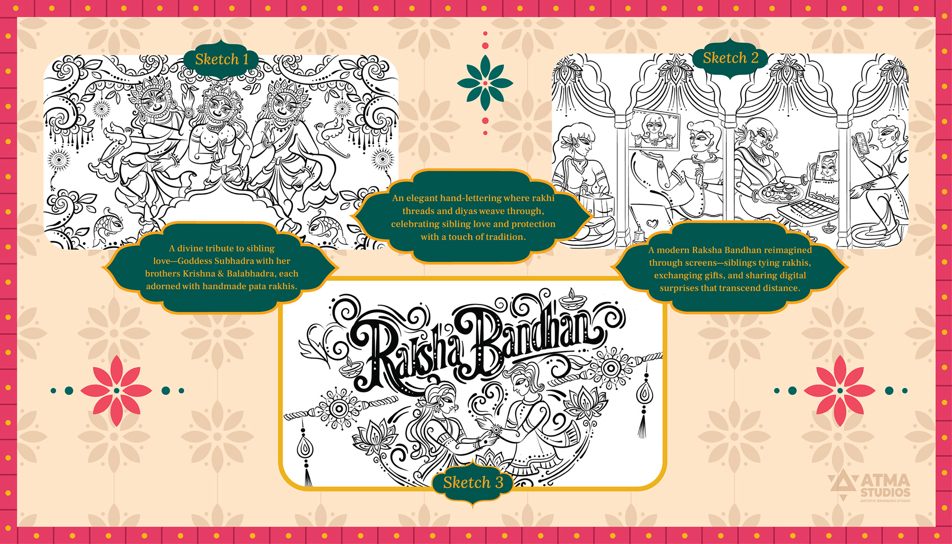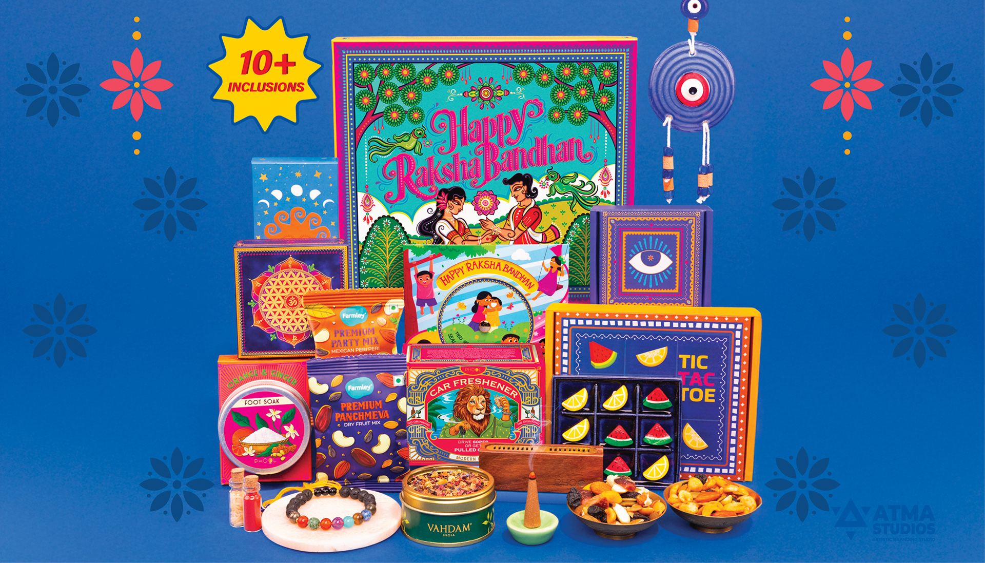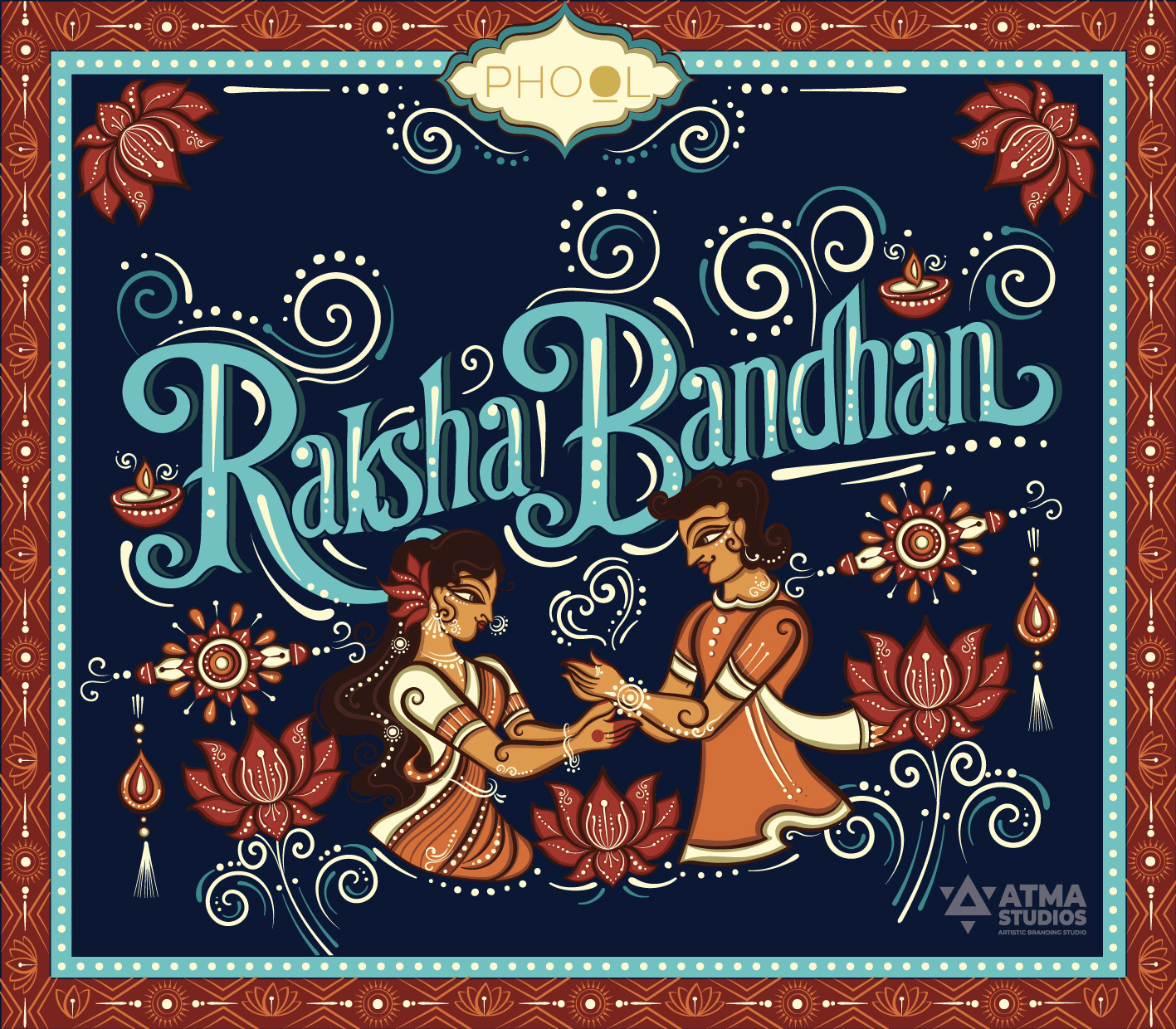 Phool’s Raksha Bandhan–themed gift box, designed by Atma Studios, reimagines sibling love and celebration through the vibrant lens of Neo-Bengal folk art. The illustration blends rich cultural motifs, expressive forms, and traditional storytelling to honor Indian heritage. Rooted in sustainable luxury, Phool upcycles temple flowers into eco-friendly products, embodying a harmony of tradition, craftsmanship, and conscious living. The packaging reflects elegance and cultural depth, transforming the art of gift-giving into a joyful and meaningful experience.