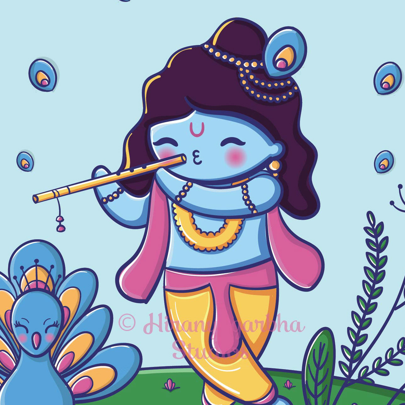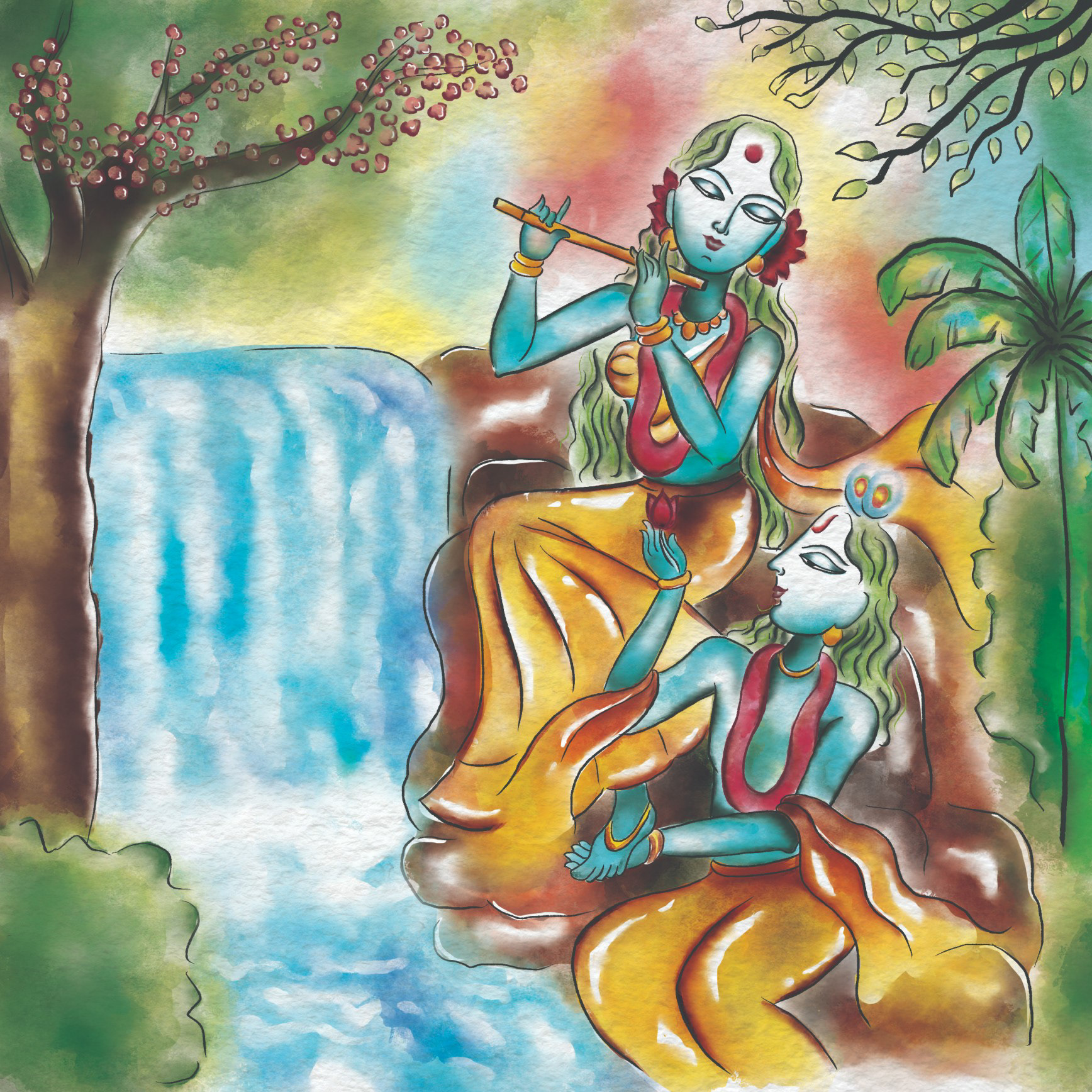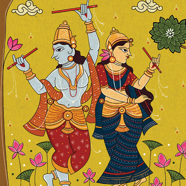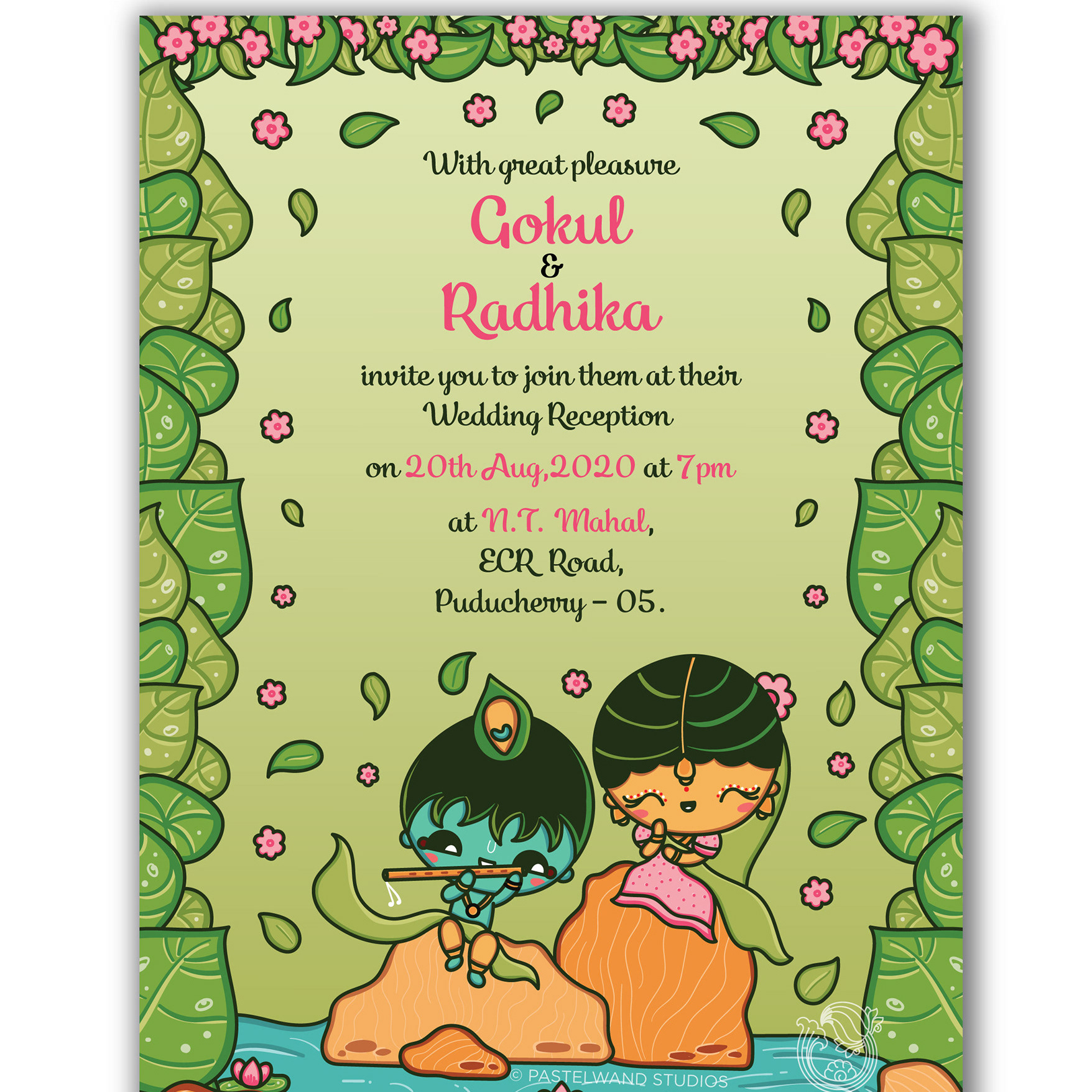Radha Krishna Wedding Invites in Toon Bengal Patua