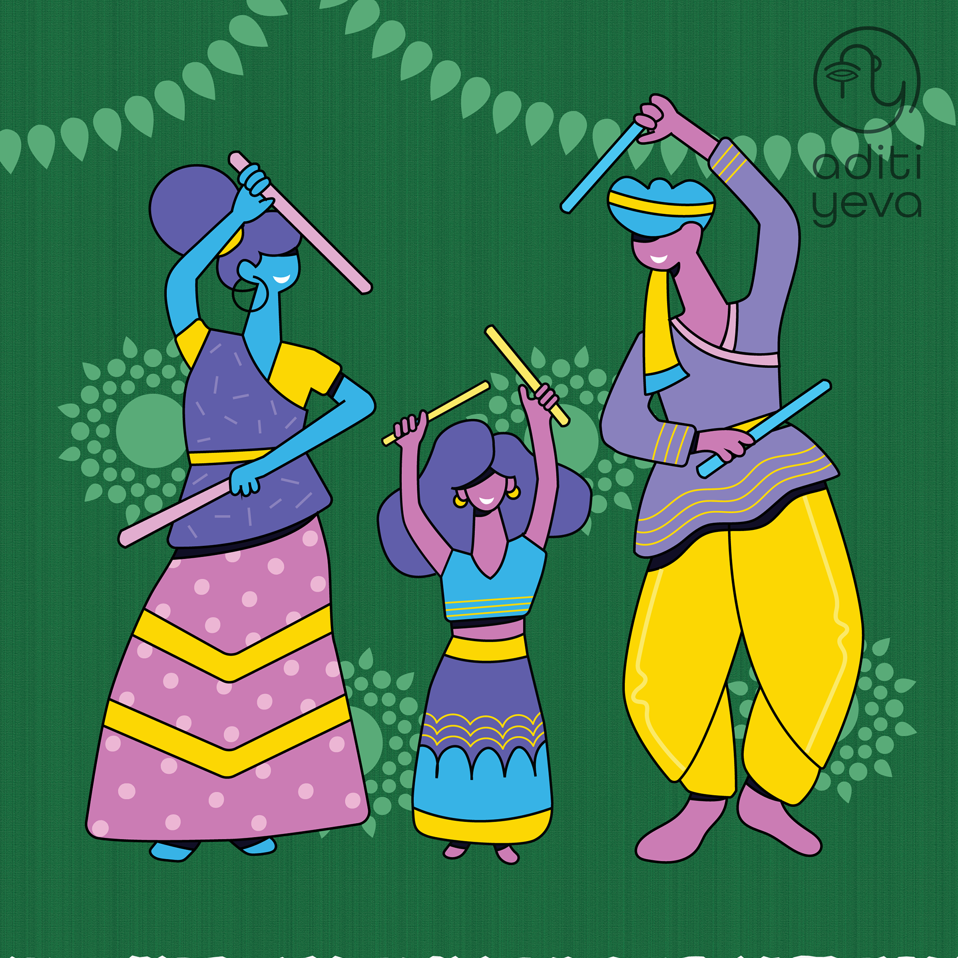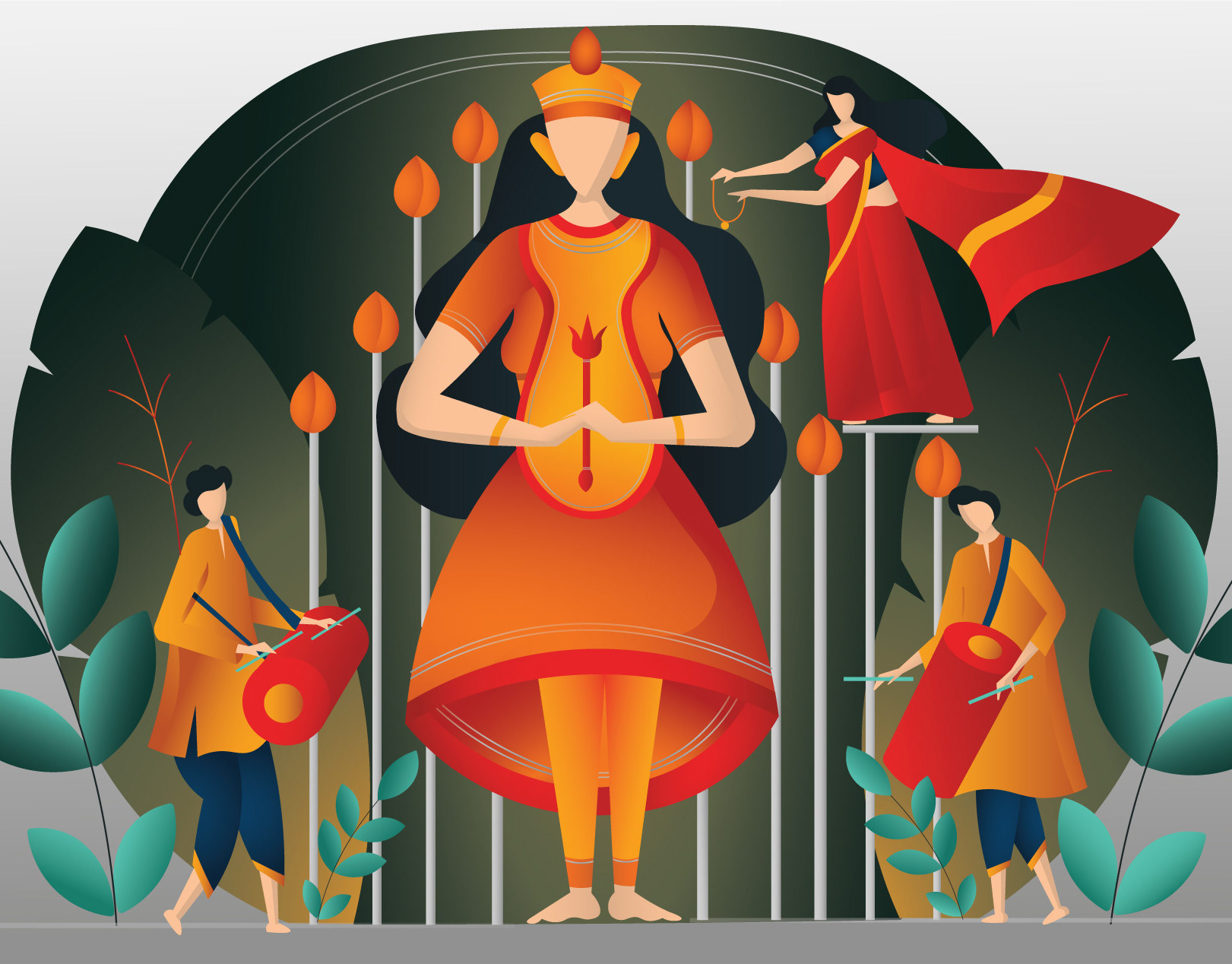 Navdurga - The Goddesses of Navratri in Kawaii style