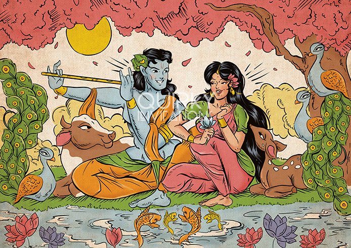 Radha Krishna quirky and fun digital painting in comic or cartoon style done in Adobe Photoshop