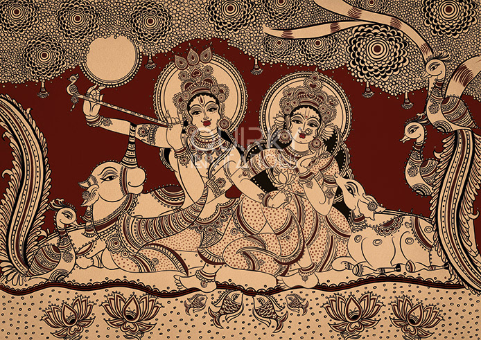 Radha Krishna Painting in intricate Indian Folk Art Kalamkari done in Adobe Photoshop