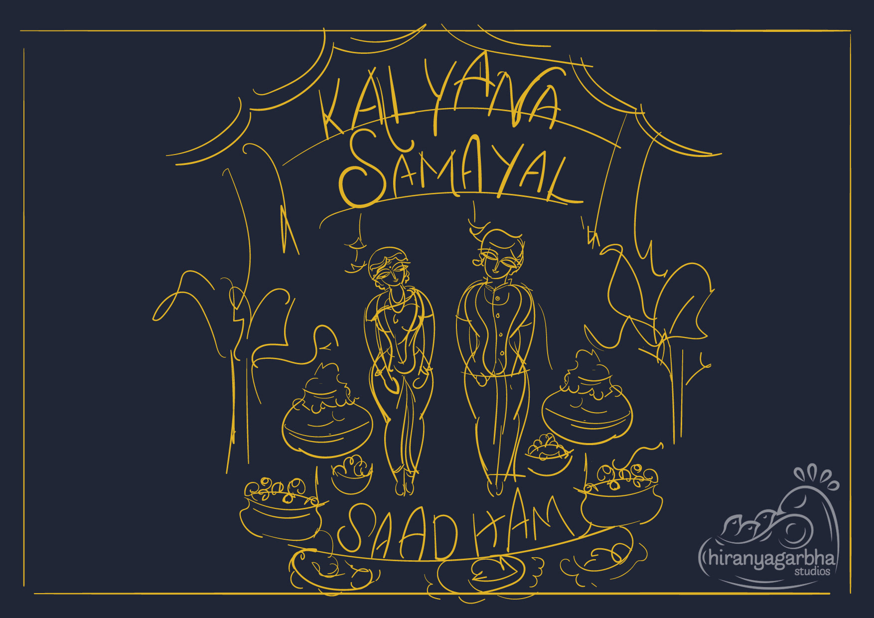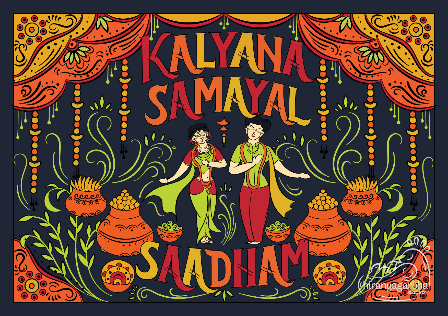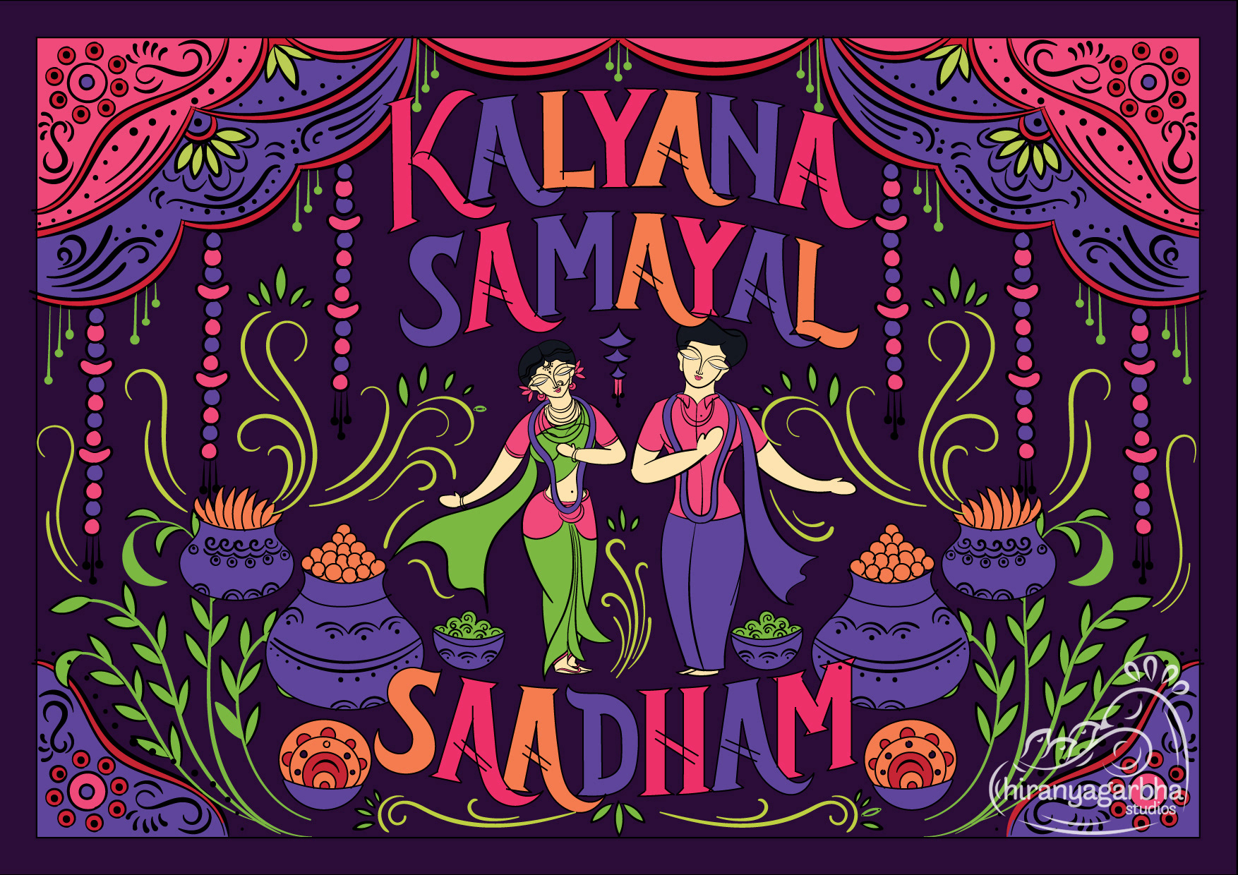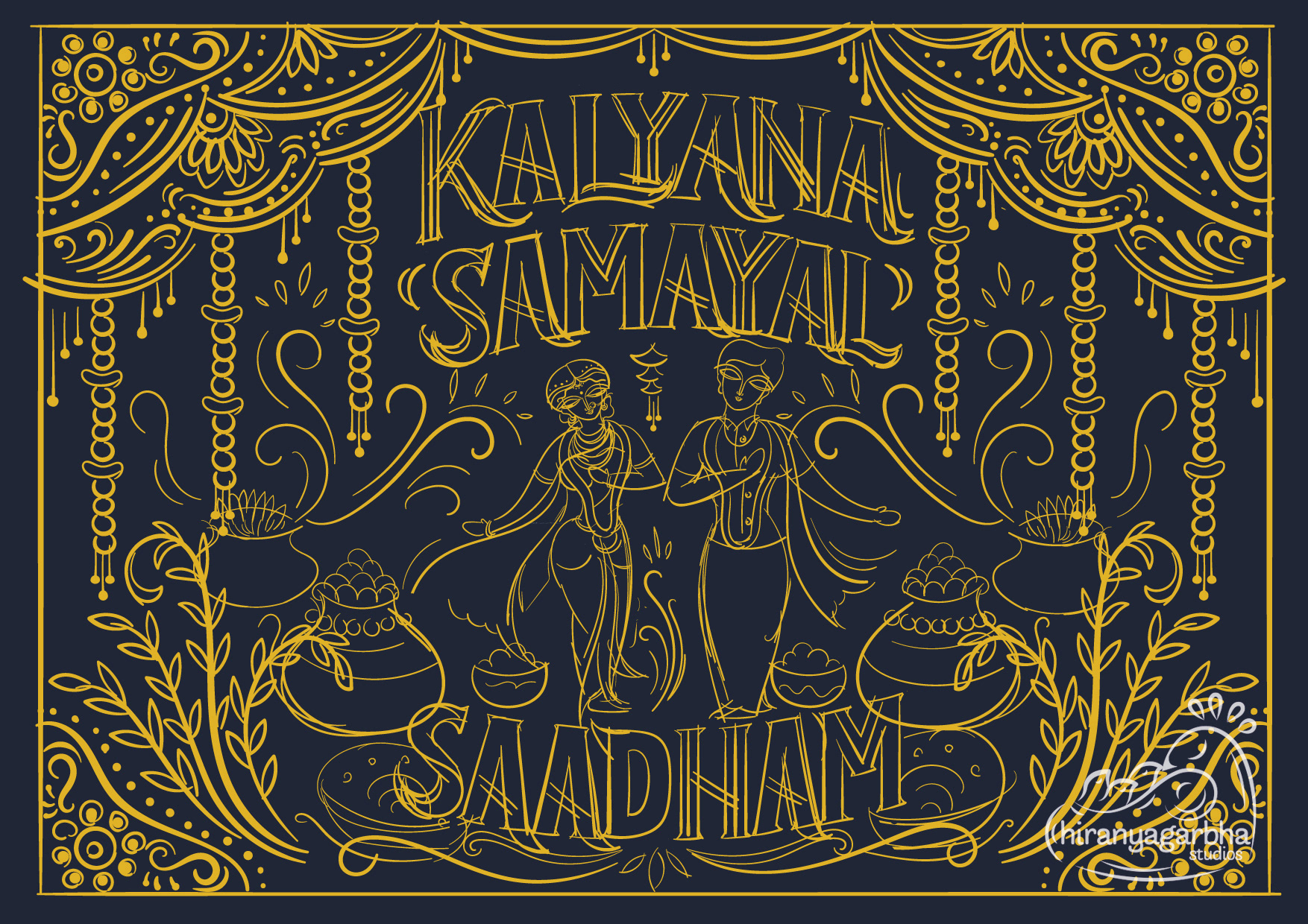 "Kalyana Samayal Saadham" is a traditional South Indian wedding feast that celebrates the union of two hearts and two families. And what better way to invite your loved ones to this auspicious occasion than with an illustrated lettering wedding invite that beautifully captures the essence of this delightful feast?