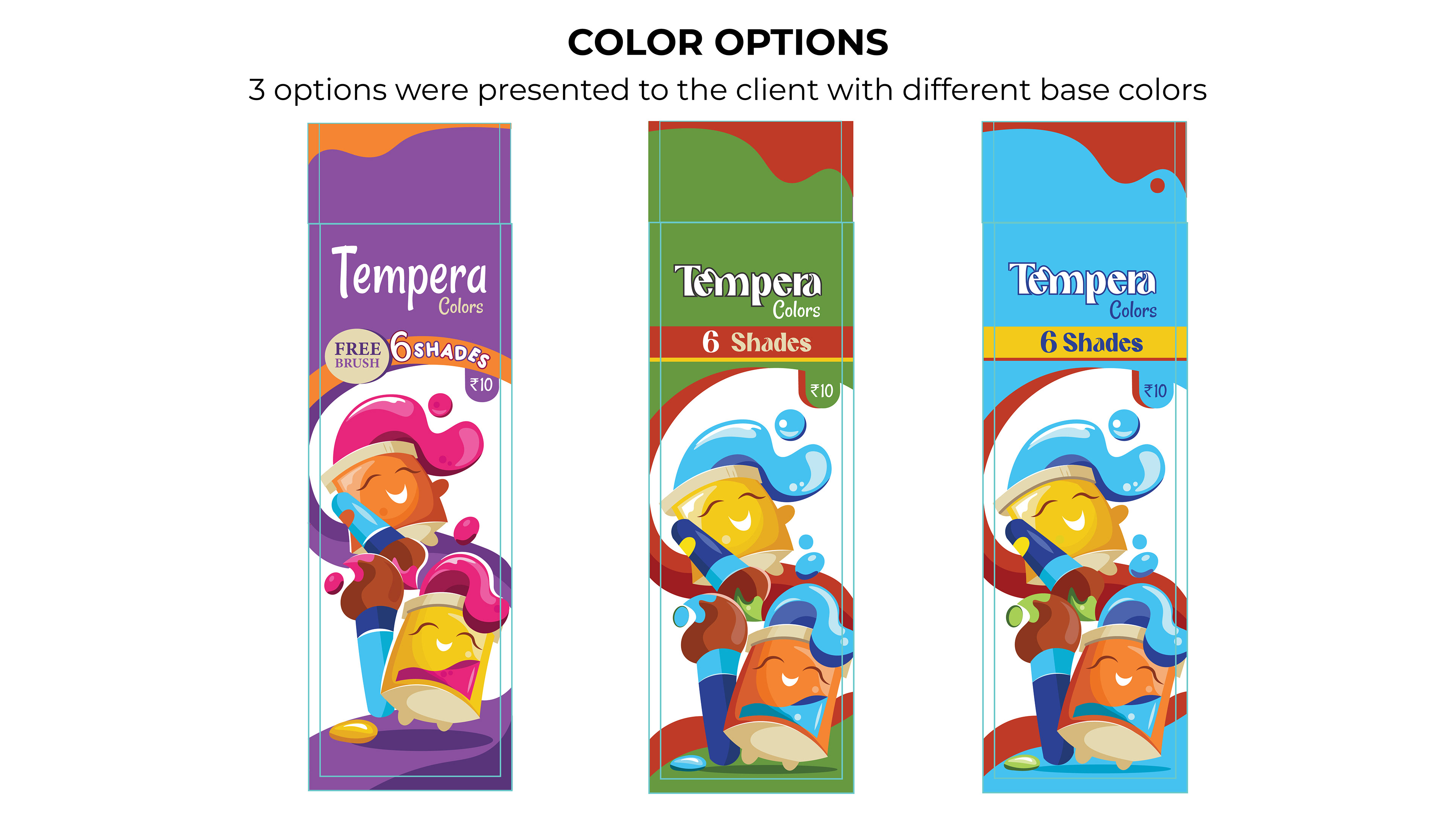 This was a Package Design Project for a stationary manufacturing company based out of India. The requirement was to decide and choose a style for packaging of Tempera colors that were being launched by the company for children in the age group of 3-14 yea…