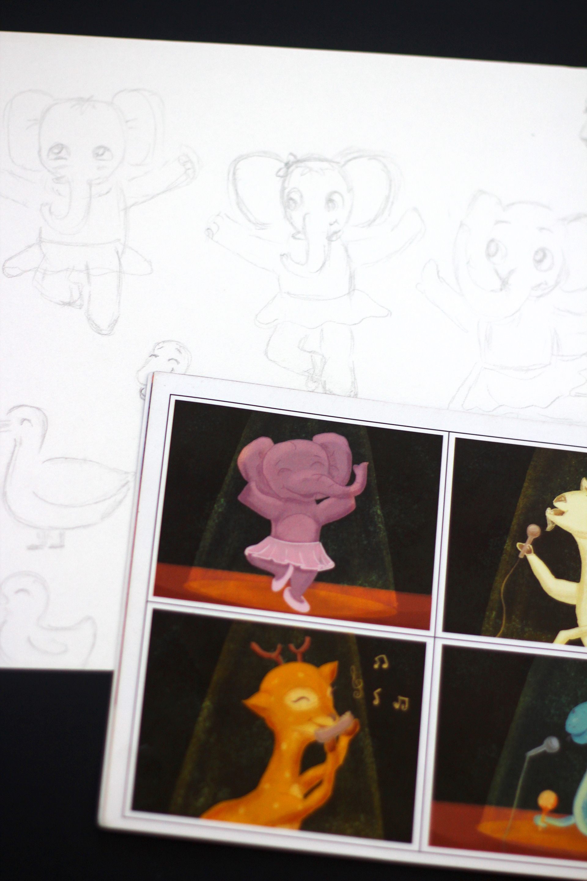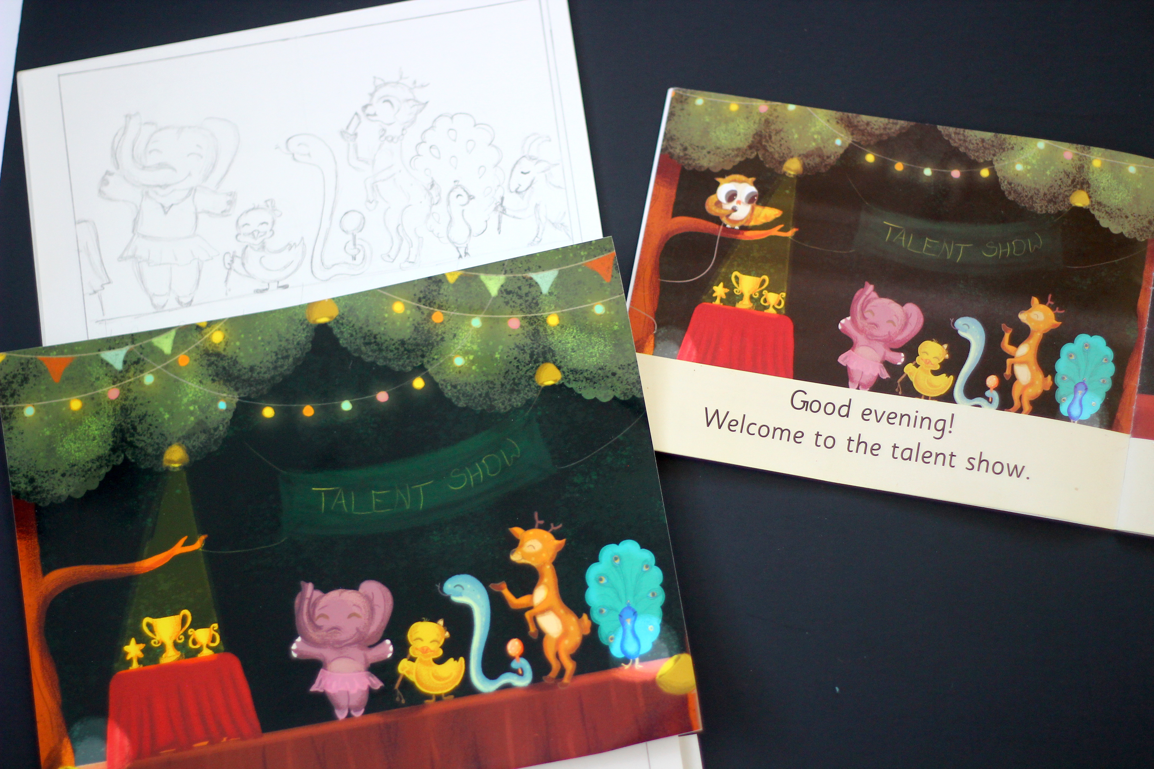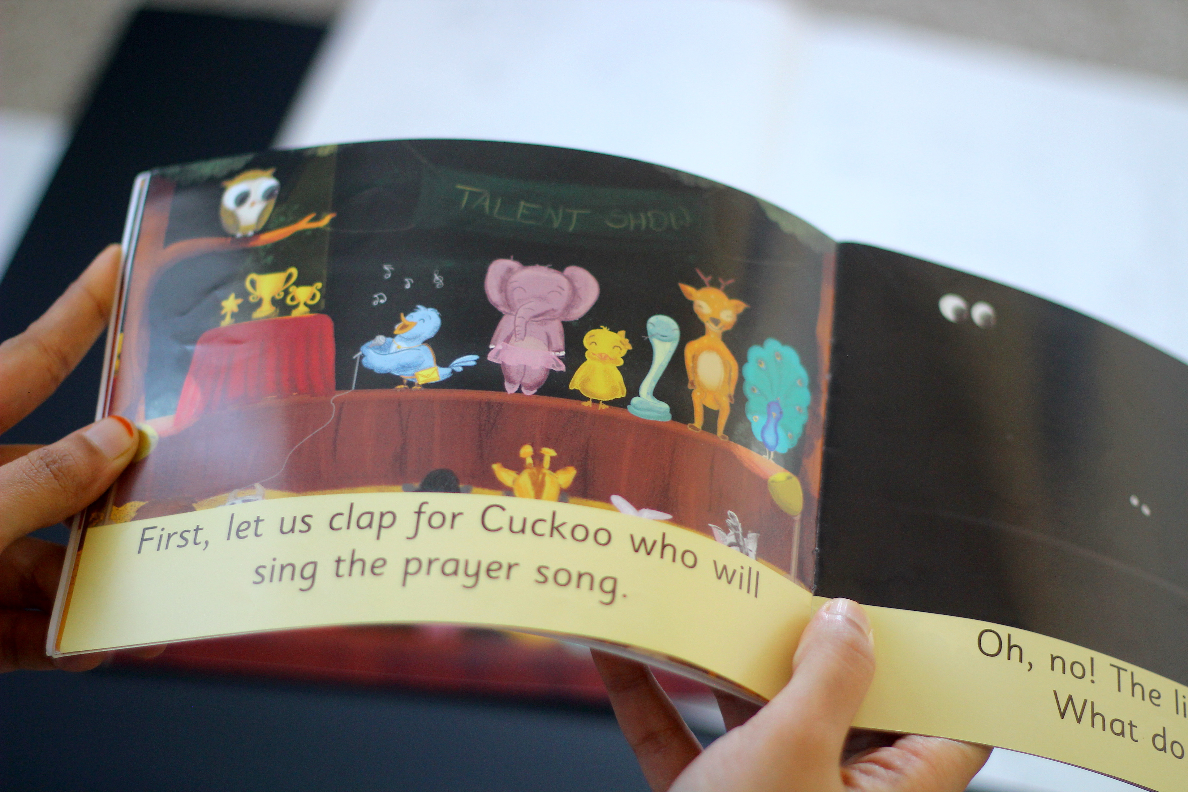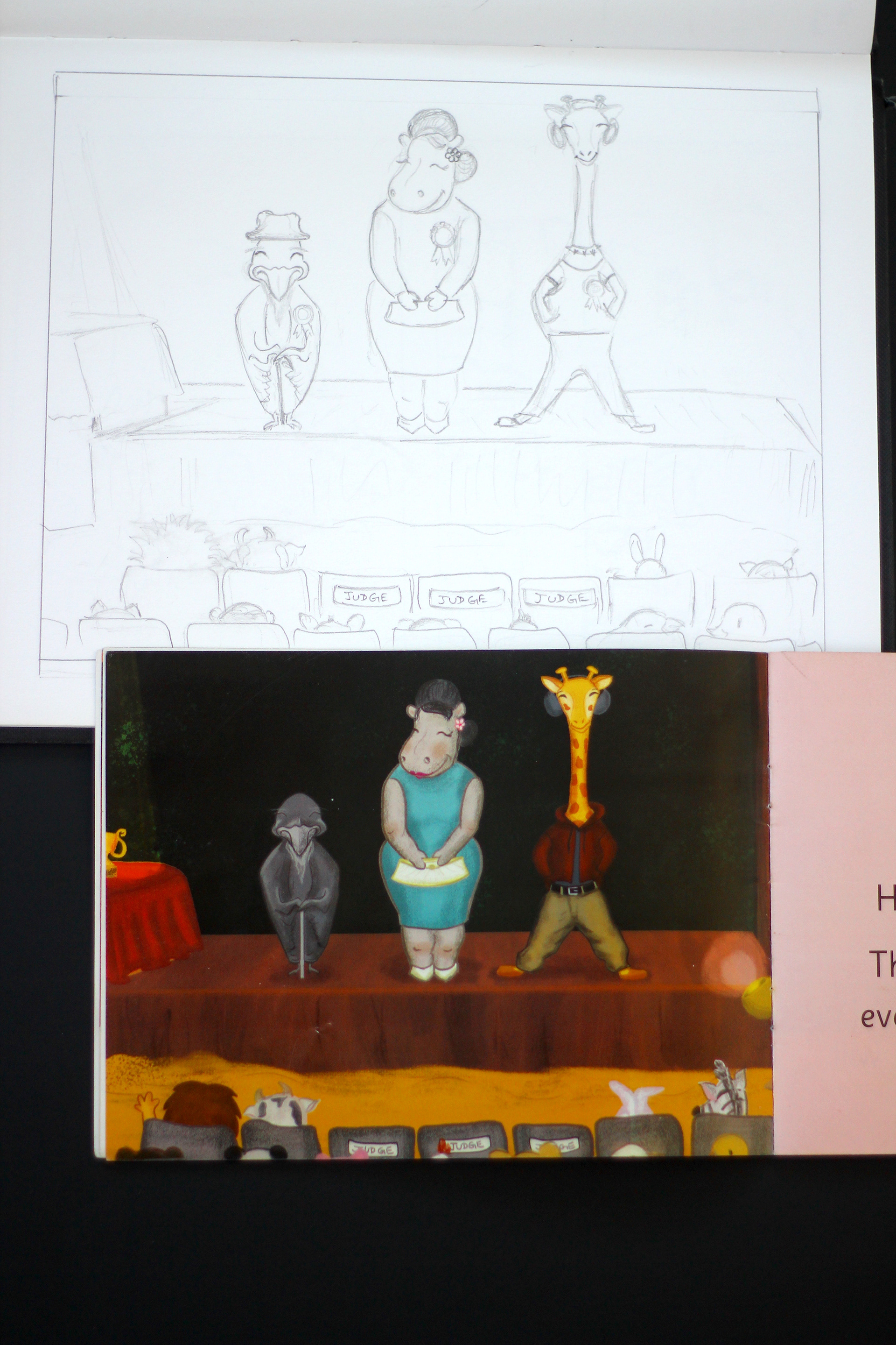 Chief Guests for the show - A happy old crow, a pretty actress hippo, a cool giraffe who's a rap artist