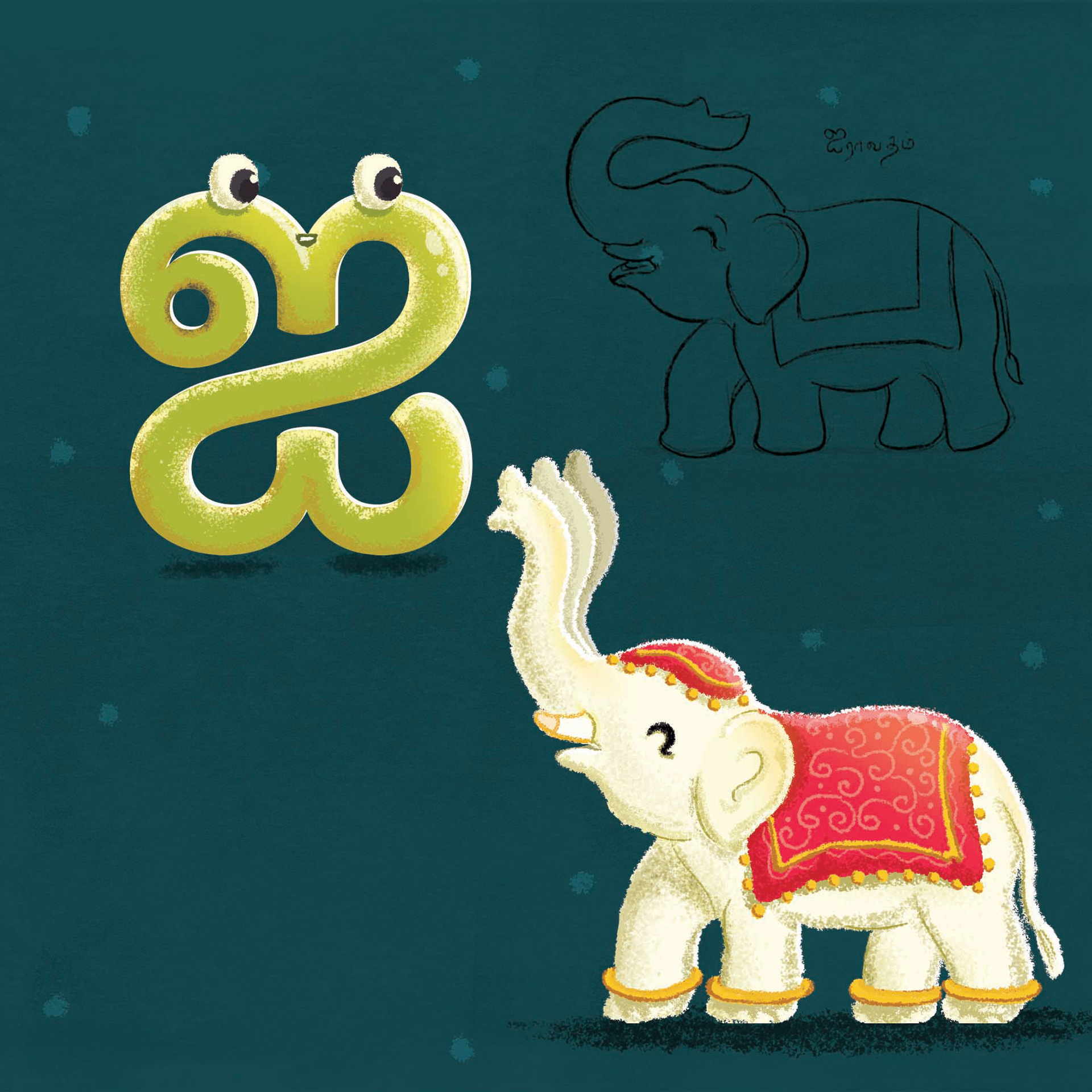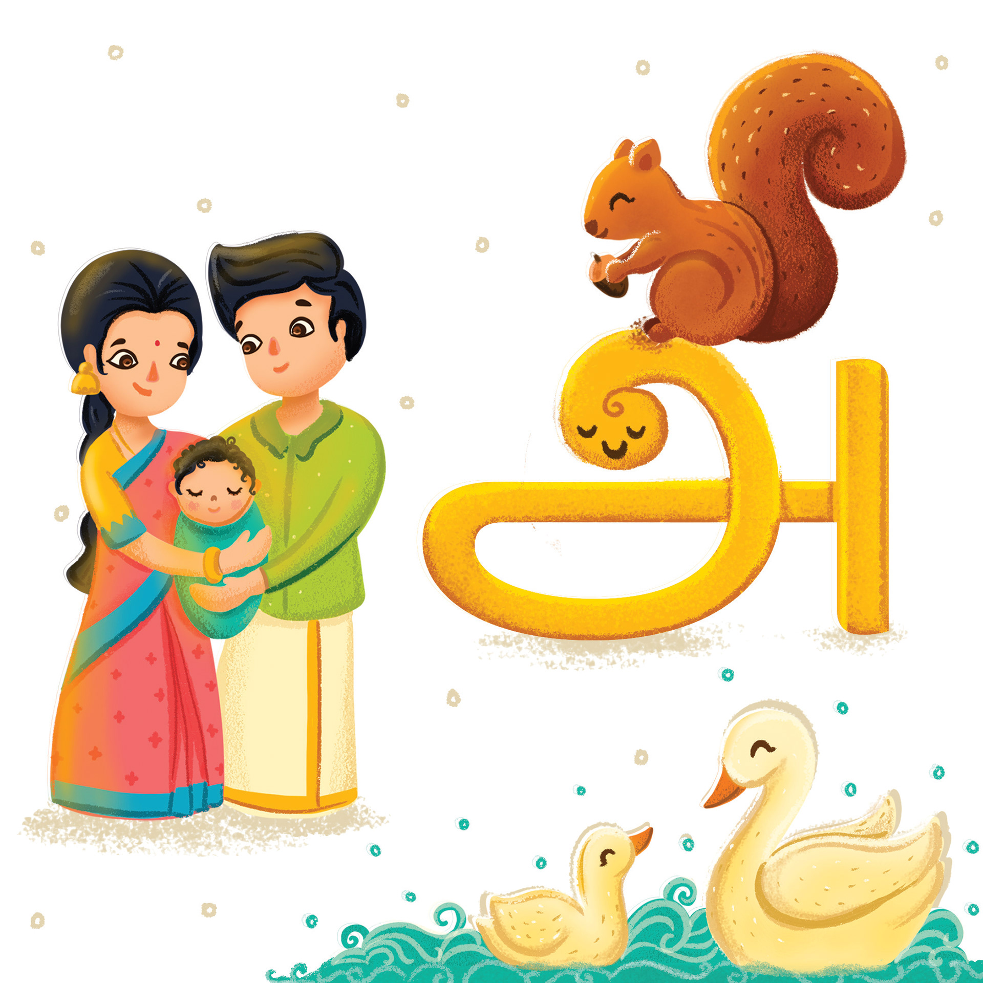 Tamizh language, with 4-5 supporting words with illustrations for each of them.