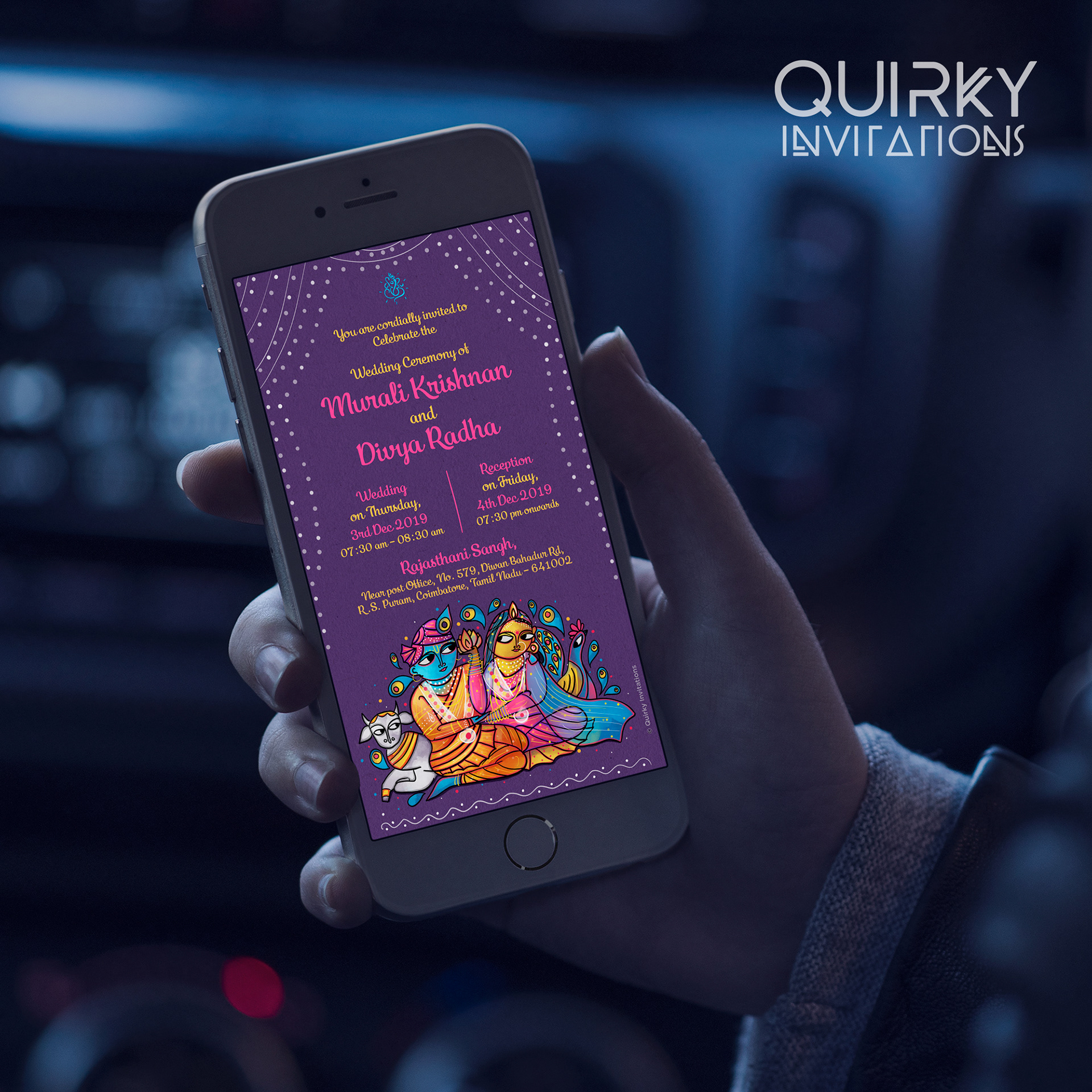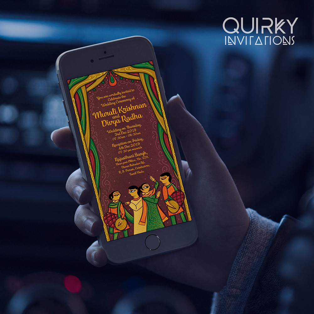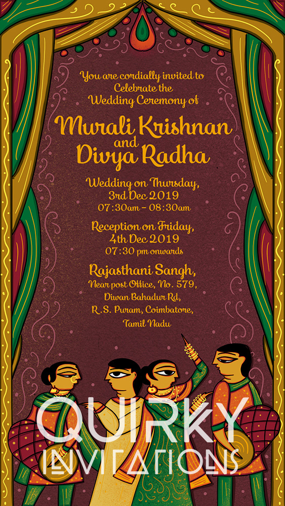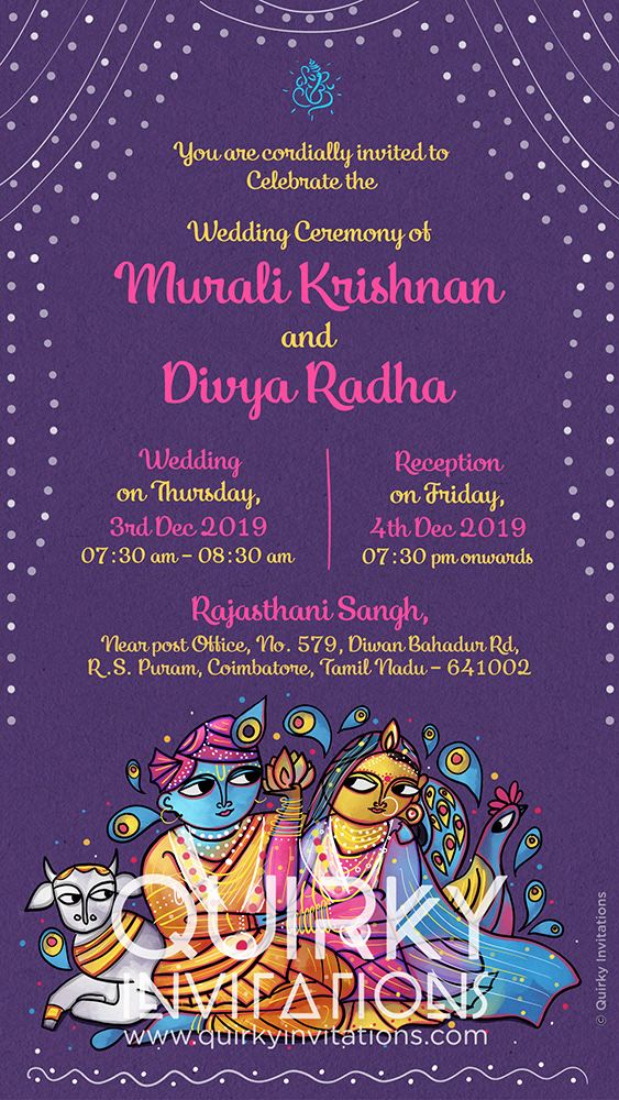Radha Krishna in Indian Folk Art - Wedding E-invitation