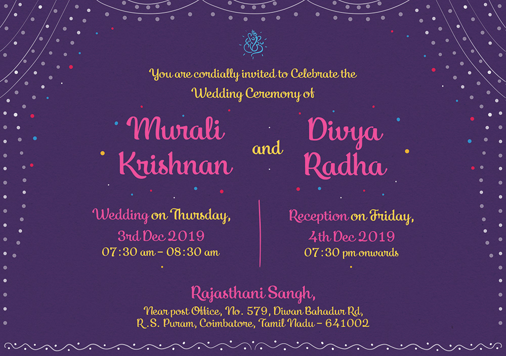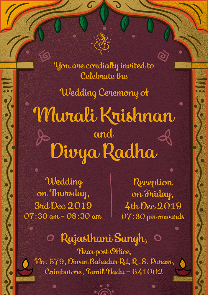 Tamil Wedding Invitation - E-invite without Couple