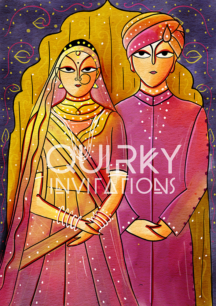 Folk Art Wedding E-Invitation - 2 Page Card (Front side) | Rs.50/- per card + Rs.20 per envelope