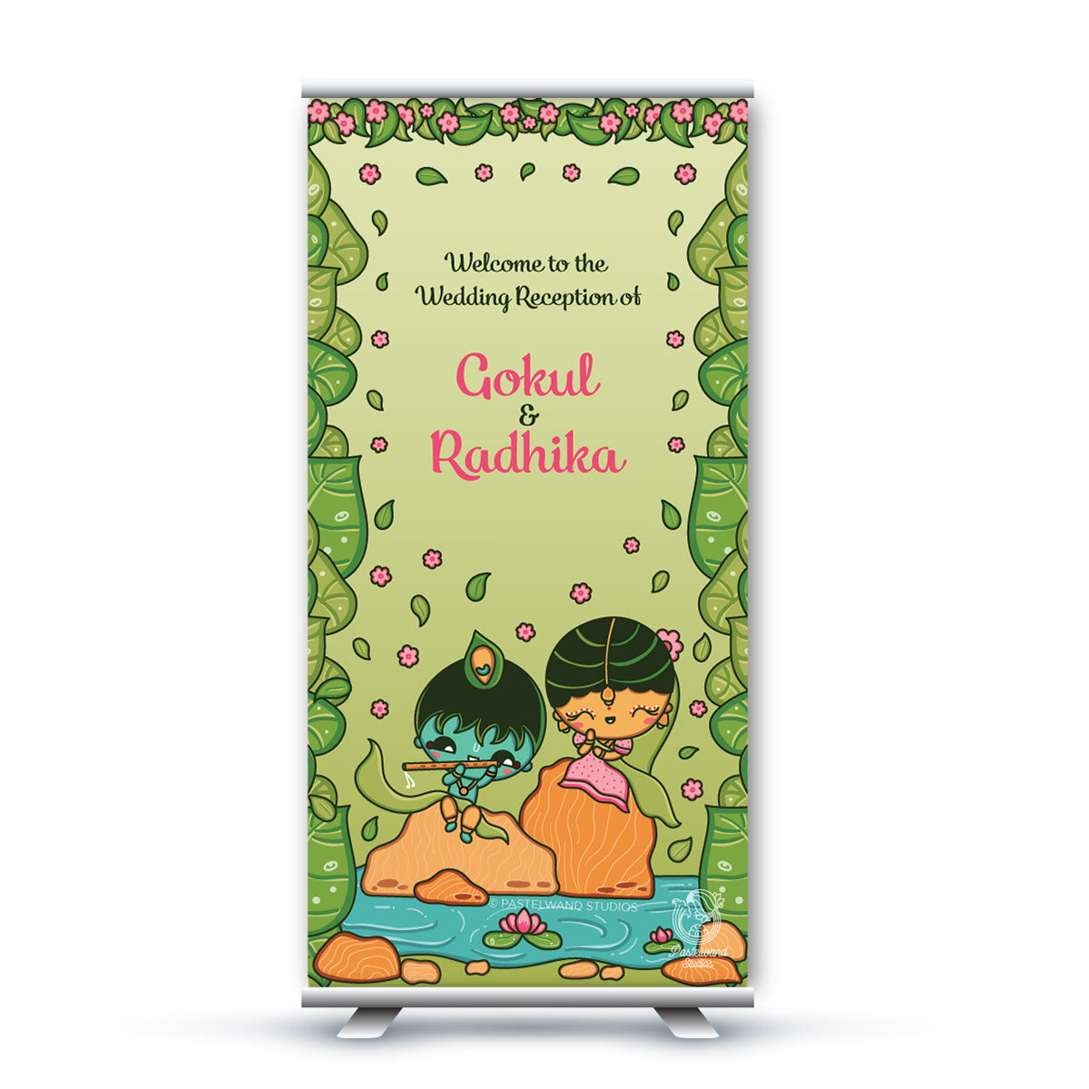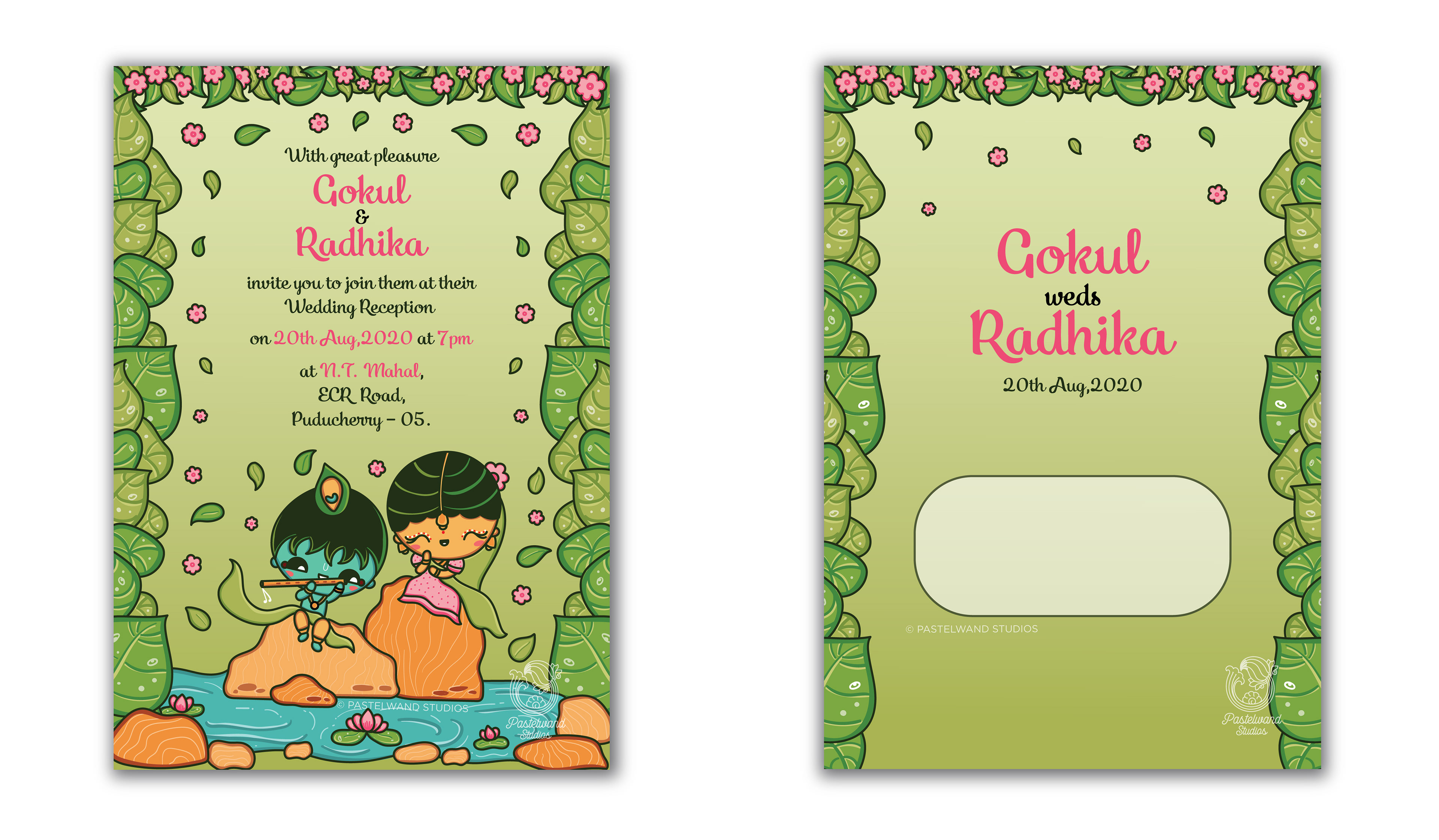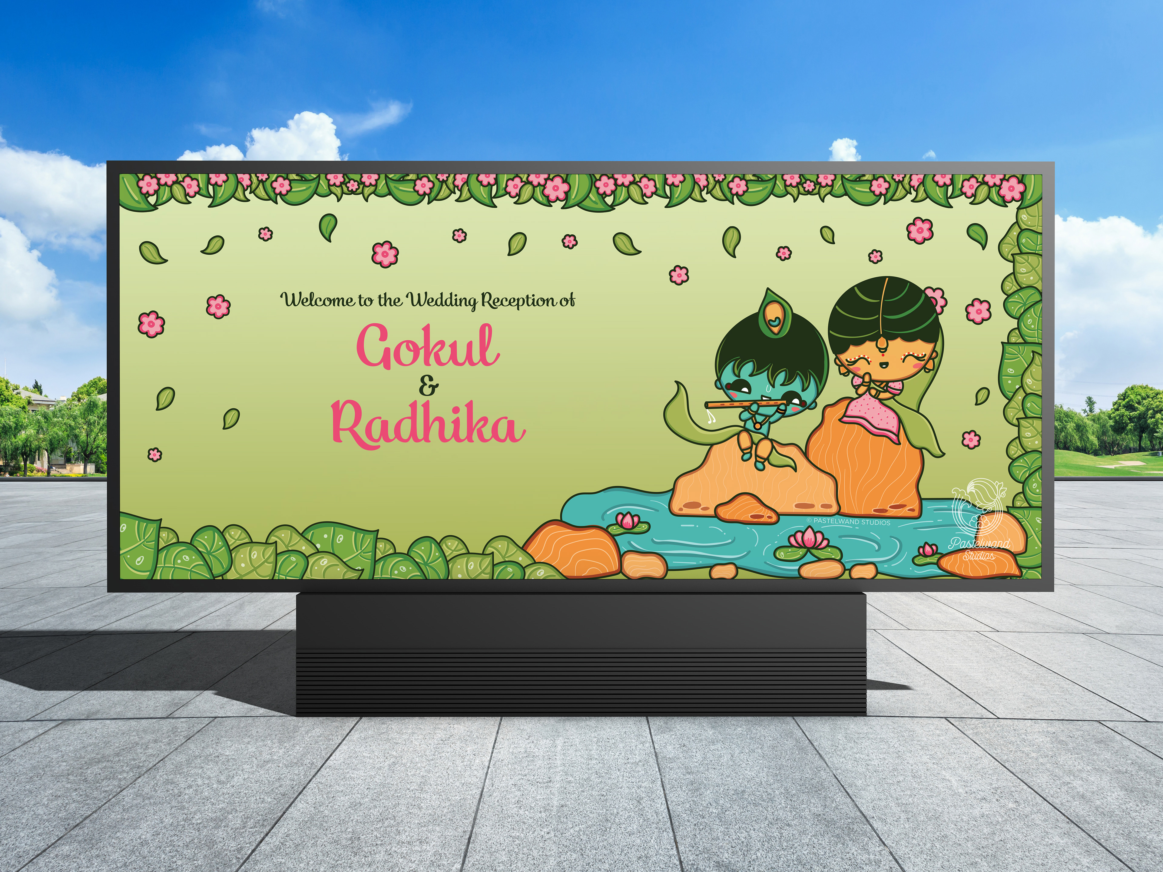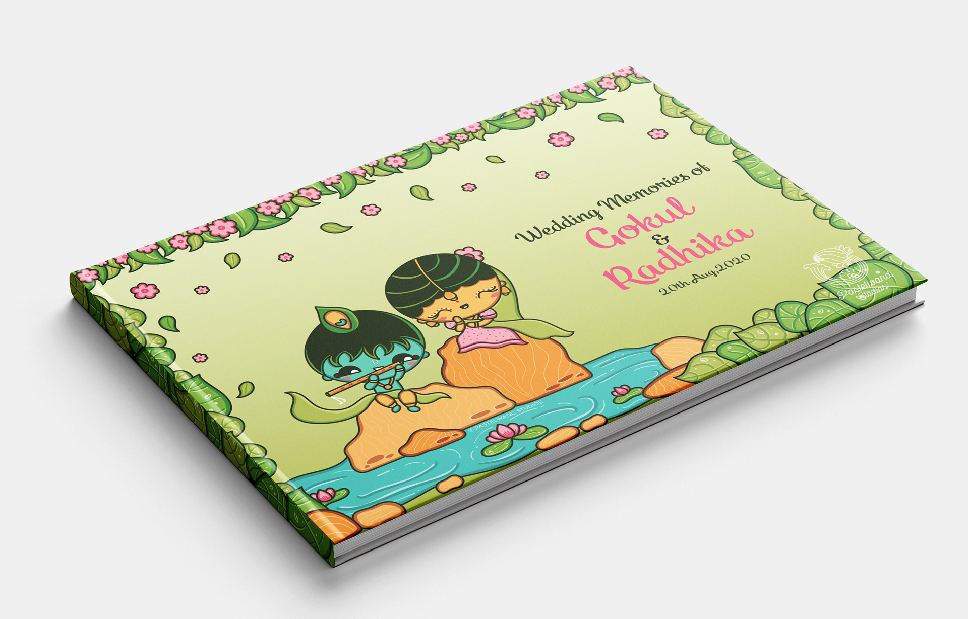 Wedding invite suite is a theme based creative package which contains wedding invitations, e-invites, welcome board, standee, return gift designs, photo book cover design, wedding DVD design and thank-you cards. Here we conceptualised and designed 'RadhaKrishna' the epic lovers of all time in the most cutest kawaii art form.The wedding suite will make your wedding a creative, unique and memorable one.