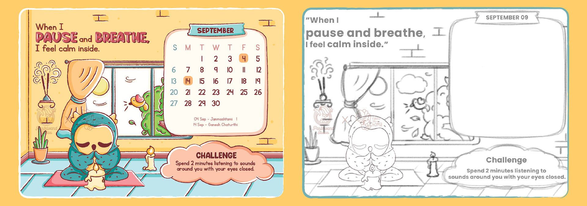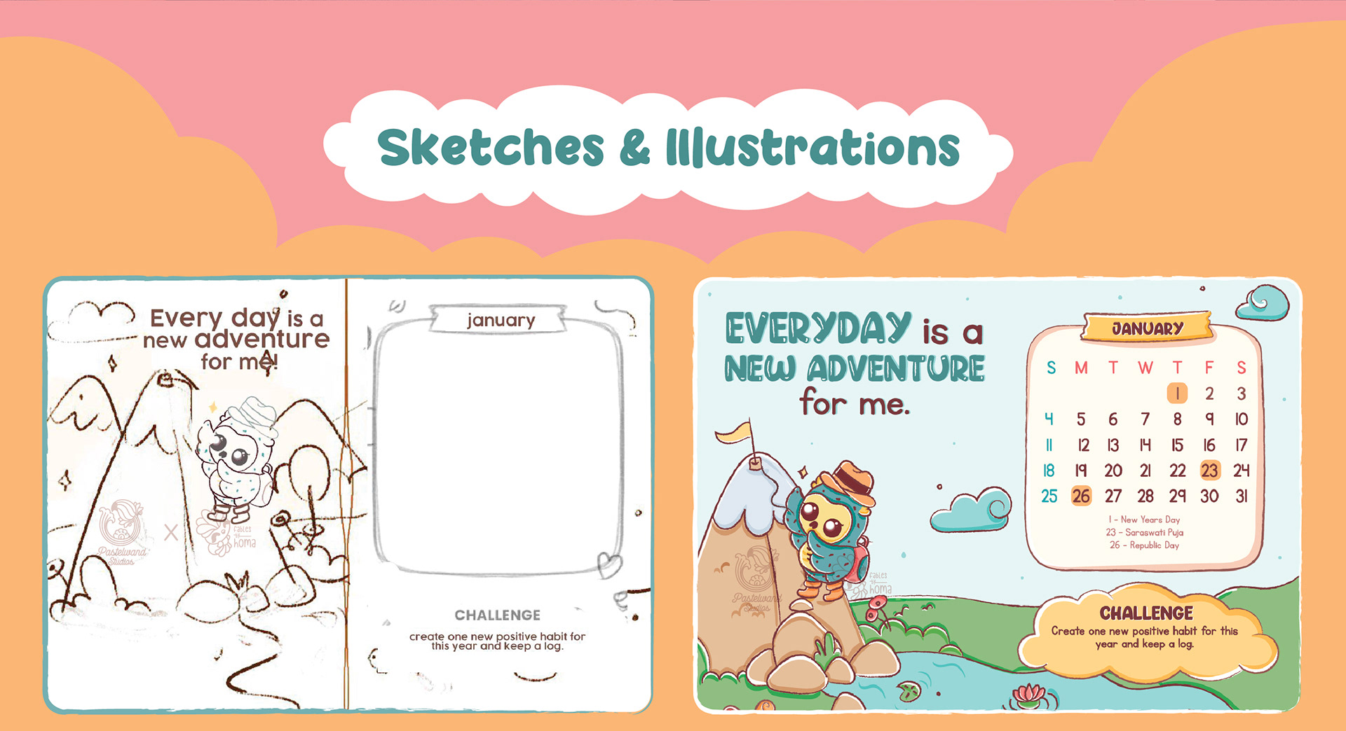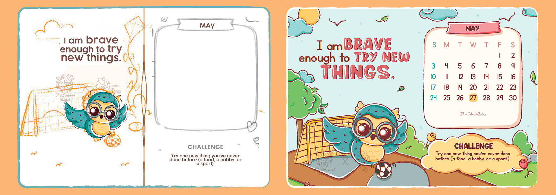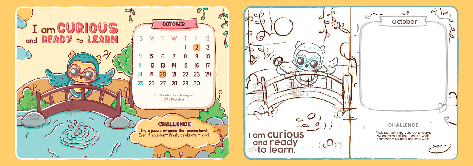The Whimsy & You 2026 Affirmation Calendar was created to support children in building positive habits and emotional awareness in a simple, approachable way. Each month features a clear affirmation paired with a small, child-friendly challenge that encourages reflection, kindness, and mindfulness. The brand mascot, Whimsy, appears across all illustrations, helping reinforce each message through everyday, relatable actions. The calendar follows a postcard-style format, with the reverse side offering space for goals, gratitude, and important to-dos. Once the month ends, each page can be reused as a postcard or kept as a memory. Designed to sit on a desk or shelf, the calendar balances function and warmth for everyday use.